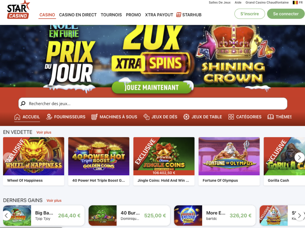 Starcasino est l’un des casinos en ligne belges les plus complets et les plus généreux en termes de promotions et de fidélité. Son écosystème Xtra Payout est un vrai différenciateur et récompense clairement les joueurs actifs.