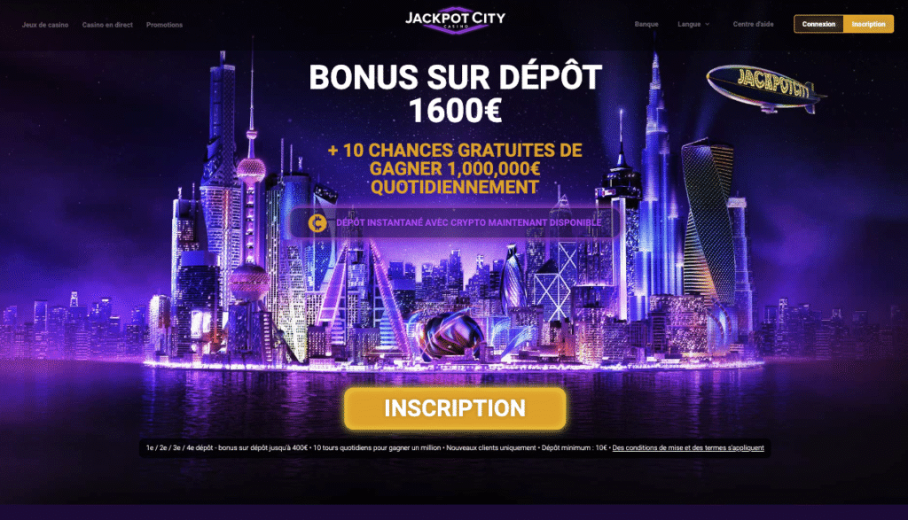 Jackpot City propose un bonus de bienvenue pouvant atteindre 1600 euros répartis sur quatre dépôts. Chaque dépôt bénéficie d’un bonus de 100 pour cent jusqu’à 400 euros. Le dépôt minimum requis est généralement de 10 euros. Cette structure en plusieurs étapes permet au joueur d’activer progressivement l’ensemble du pack plutôt que de tout miser d’un seul coup.